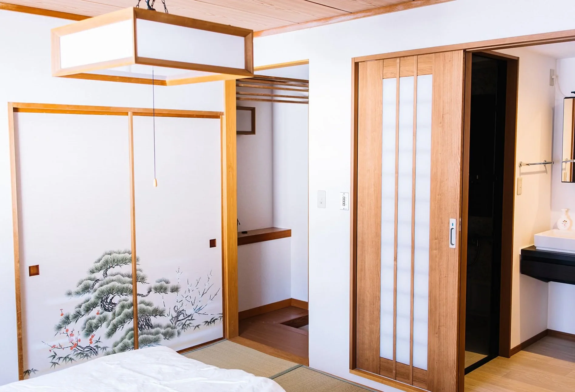 Momo Lodge offers four traditional bedrooms featuring tatami floors, and other traditional Japanese wallpaper and windows.